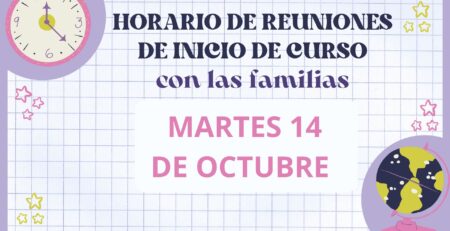 Inicioadmin2025-09-21T07:59:27+00:00 Previous Next REUNIÓN INICIAL DEL CURSO 25/26 ENTRE FAMILIA Y TUTORES Estimadas familias: El próximo martes 14 de octubre, vamos a realizar la reunión inicial del curso 2025/26 de padres/madres con... read more RECREOS ¡Accede al siguiente enlace para ver las nuevas dinámicas del recreo! https://drive.google.com/file/d/1ZByBhLuVh0qjMw570SMR8W8RtSdbrQde/view?usp=sharing read more HORARIO BUS read more Ver más noticias