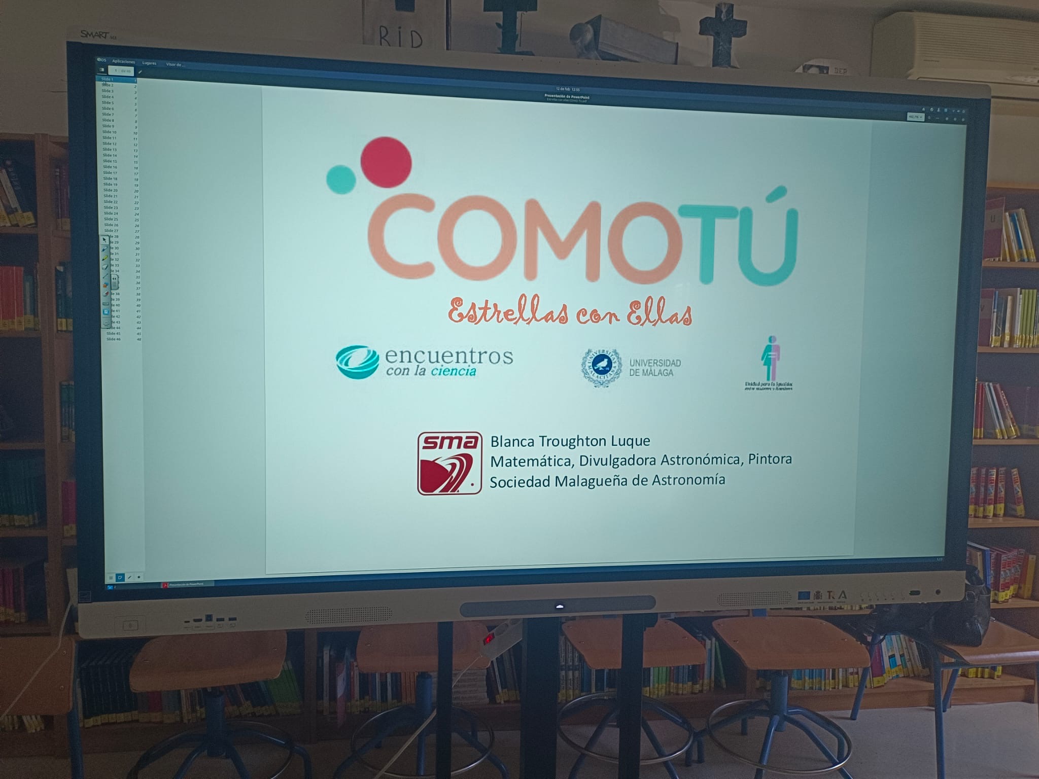 Nuestro centro ha tenido el placer de acoger el taller “Estrellas con ellas”, dentro del programa Como Tú, de la mano de Blanca Troughton, mujer, matemática y divulgadora científica, que nos ha acercado al universo de una forma cercana e inspiradora.